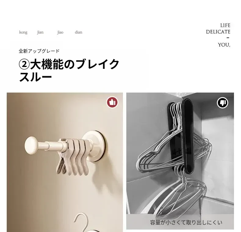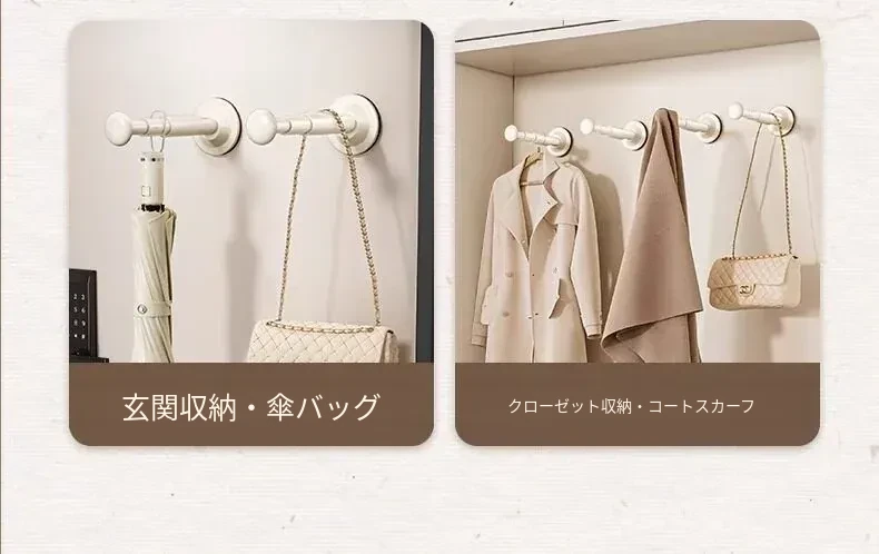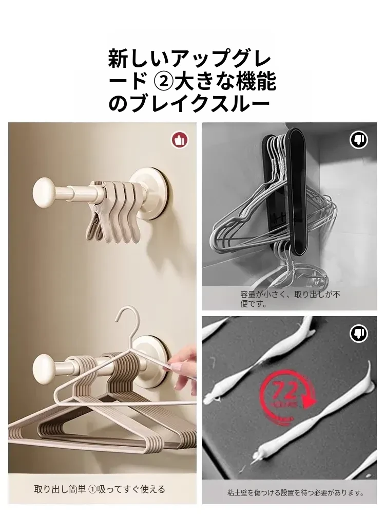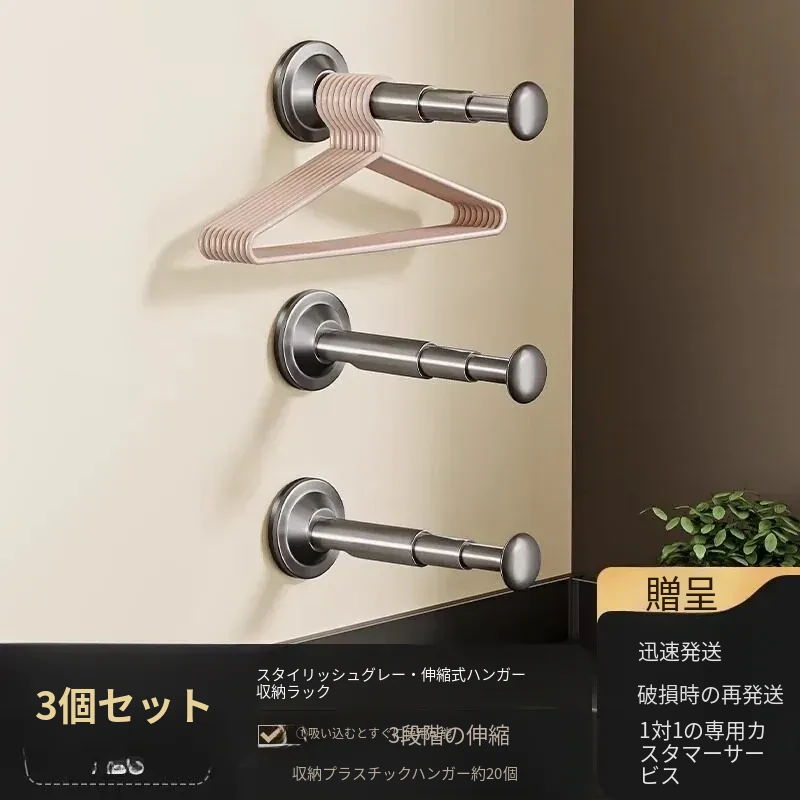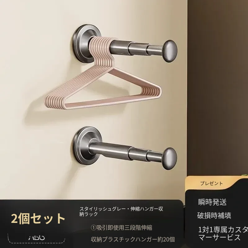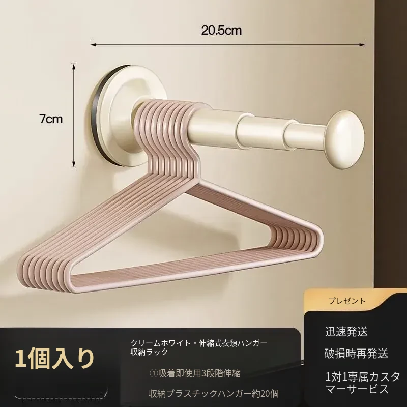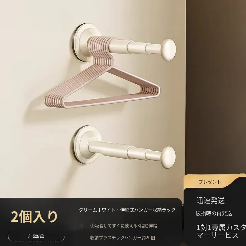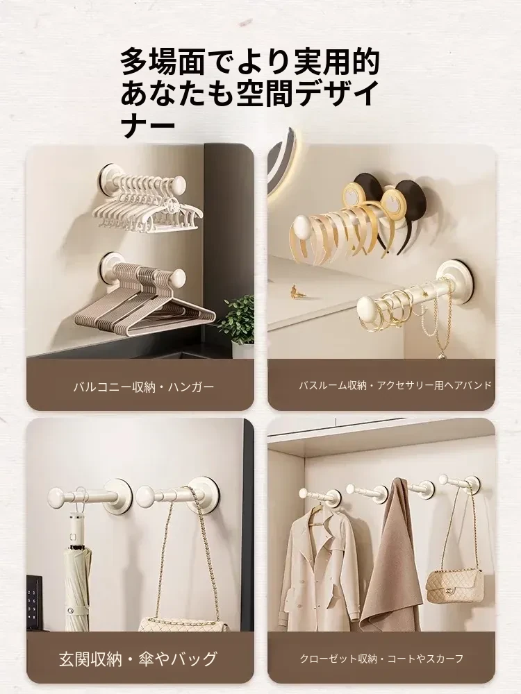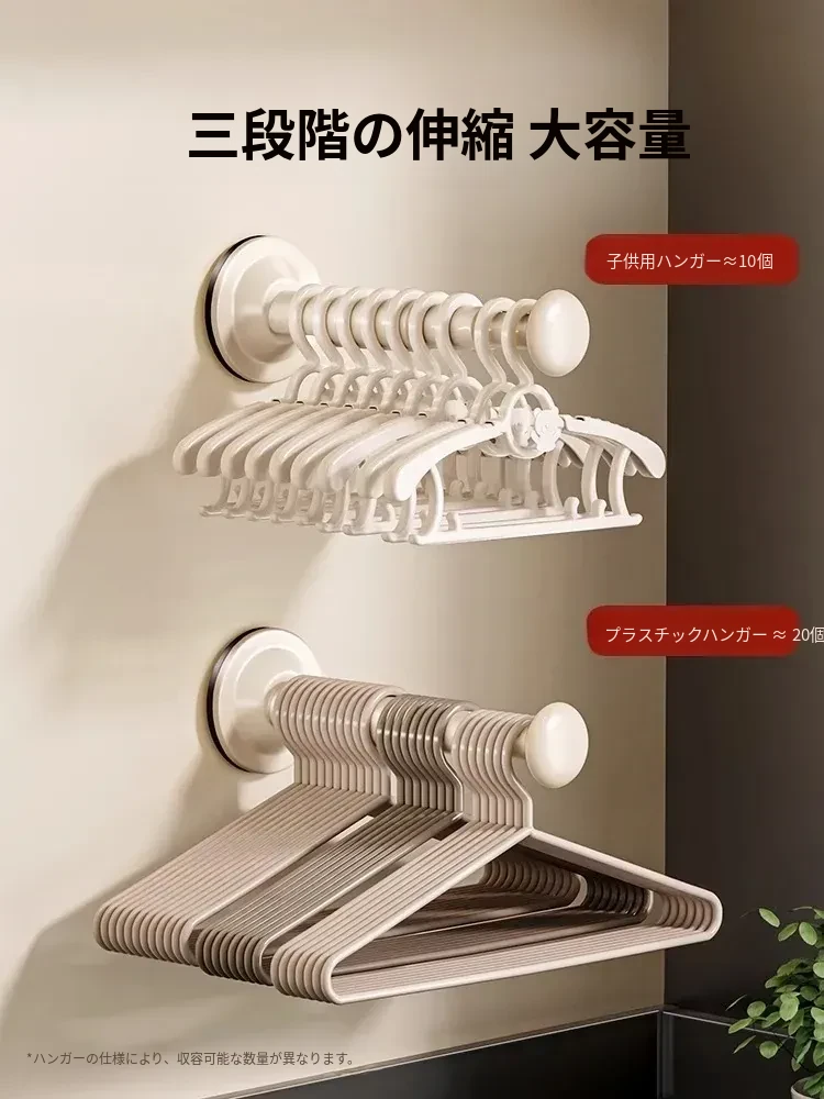 バルコニー用吸盤式衣類ハンガー収納ラック - 壁掛けタイプで穴あけ不要!多機能・伸縮可能な家庭用整理ラックで、すっきりとした空間を実現します。