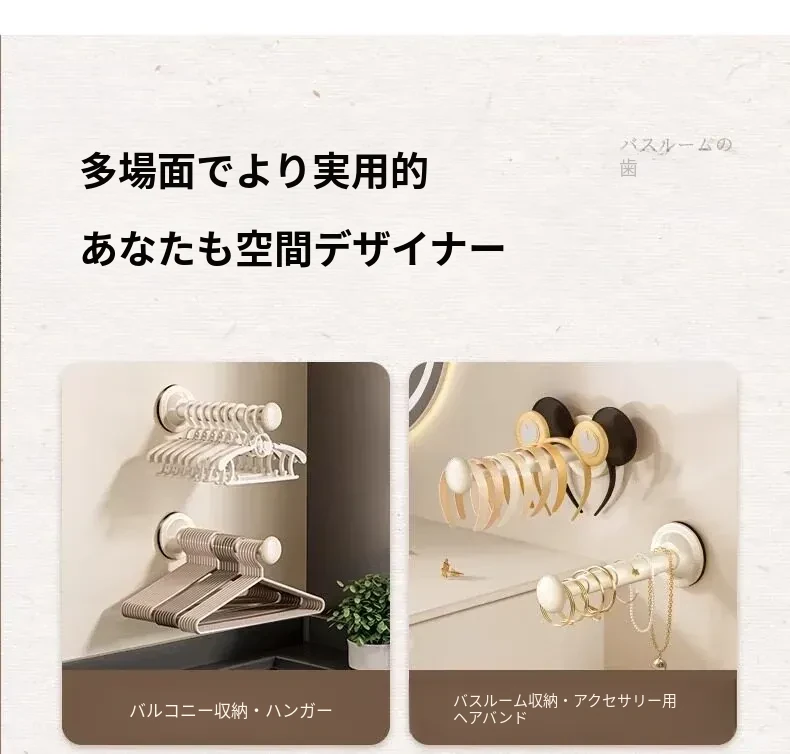 【アイボリー】吸盤ハンガー収納ラック