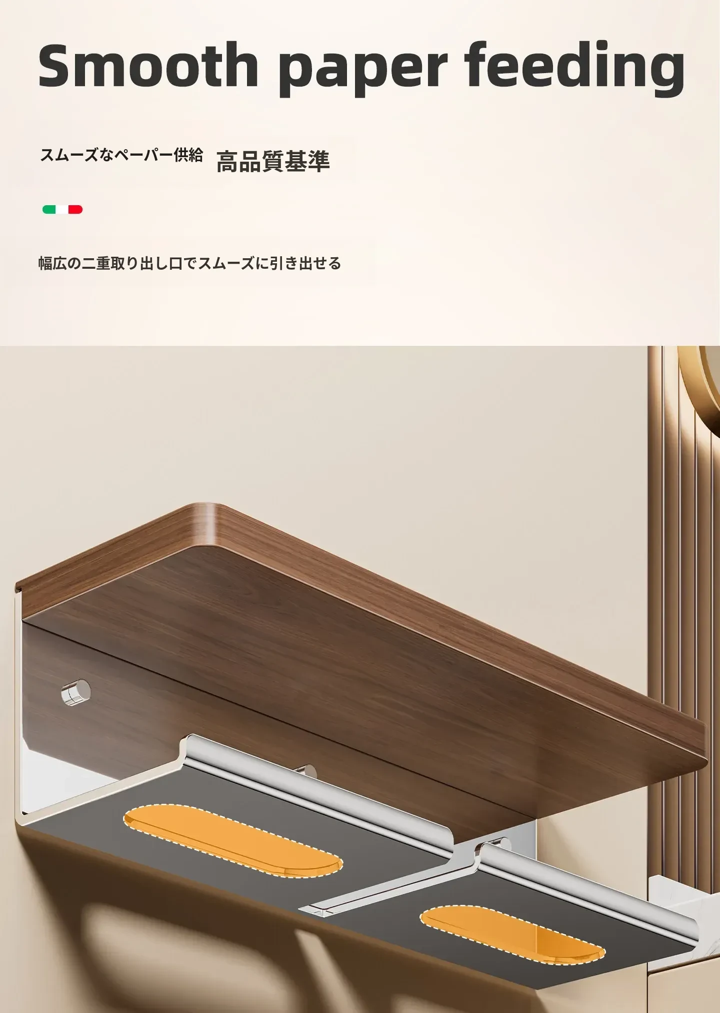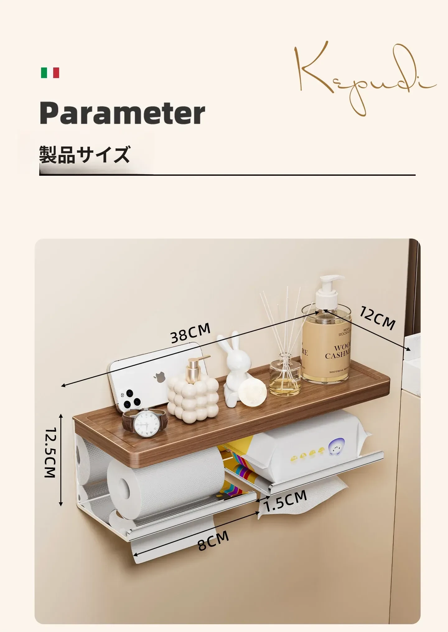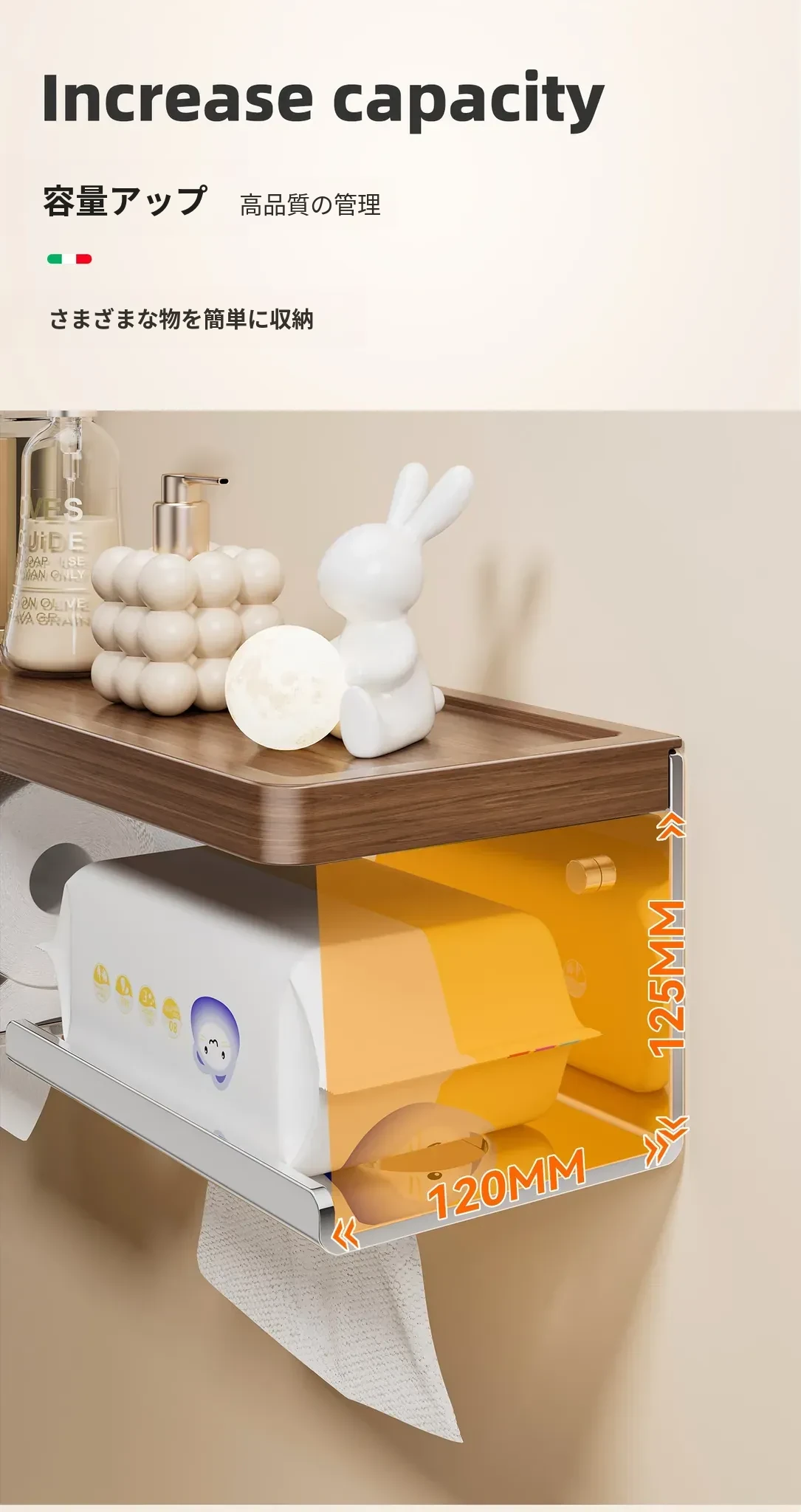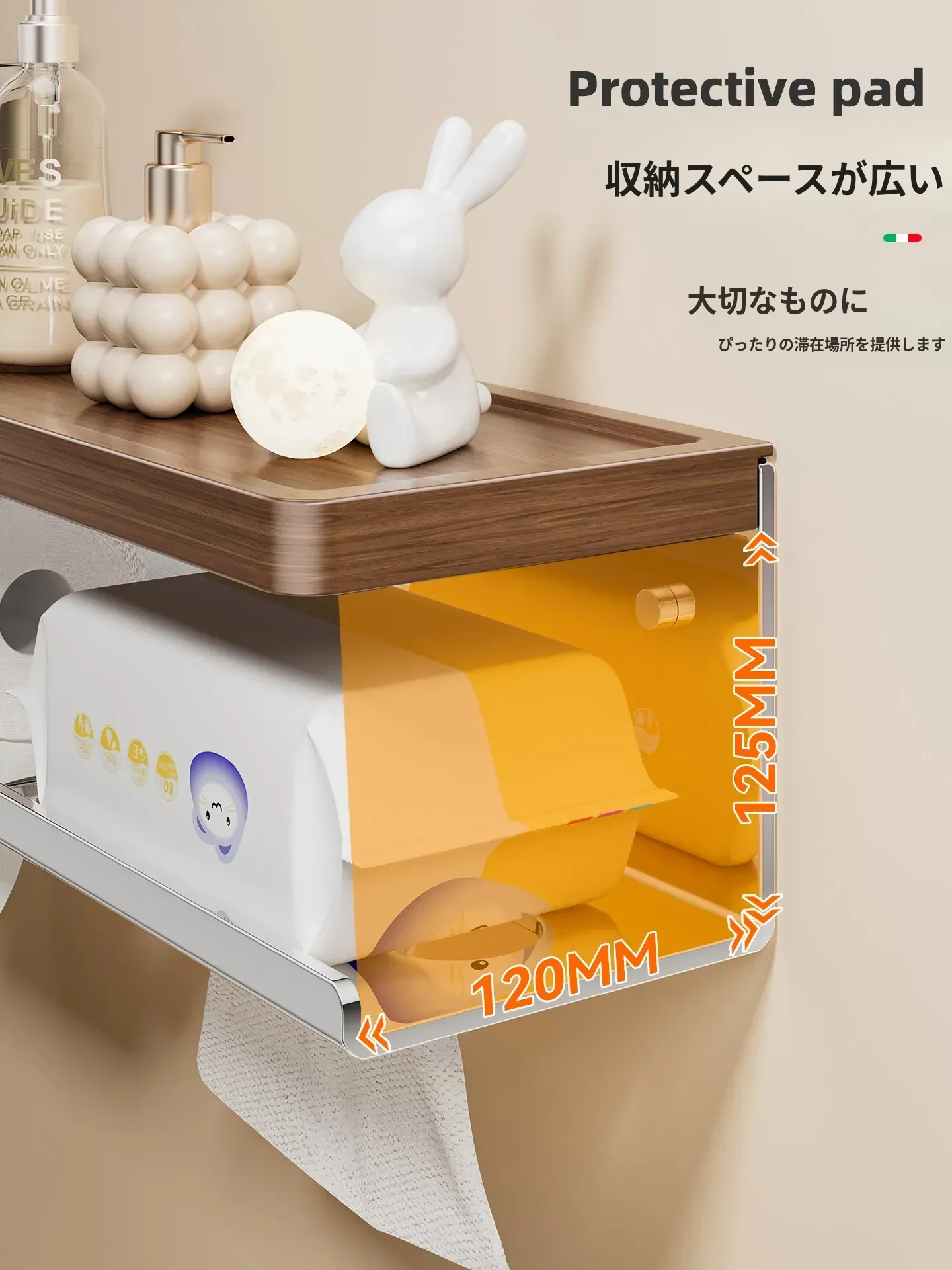 ウォールナット製トイレットペーパーホルダー、穴あけ不要!304ステンレス製のバスルーム&トイレ用ティッシュラック、スタイリッシュな収納で空間を美しく演出します。