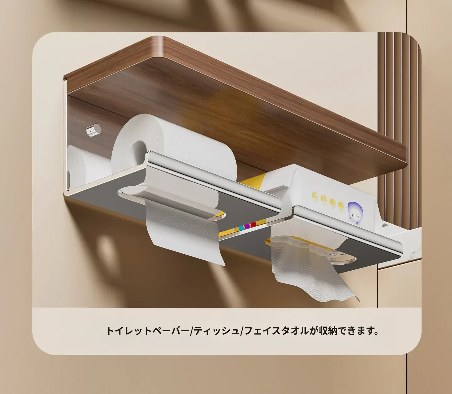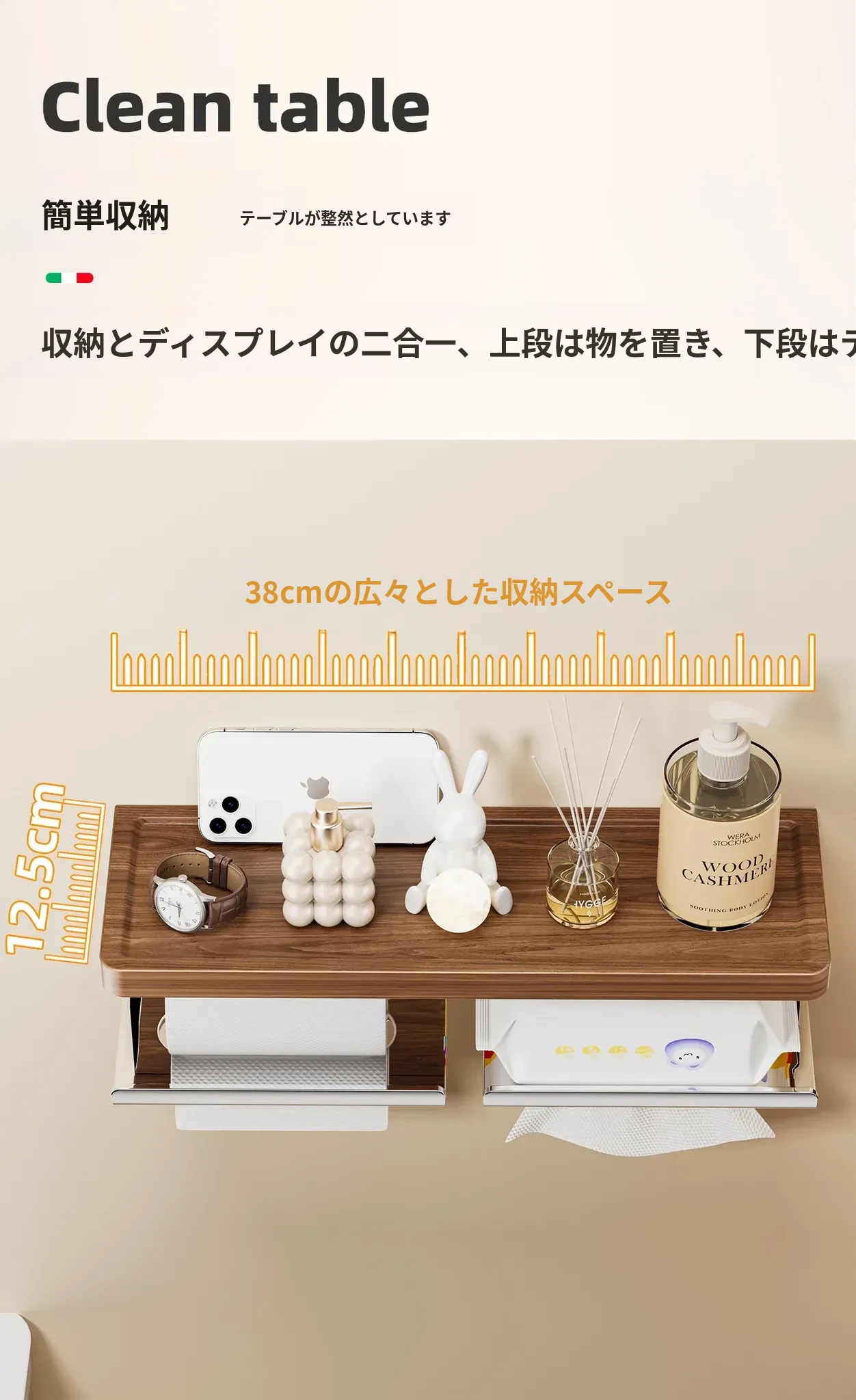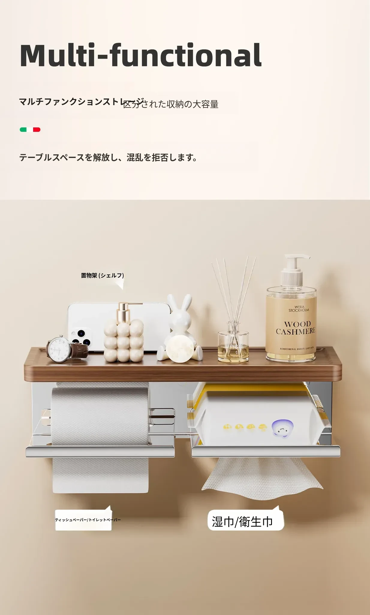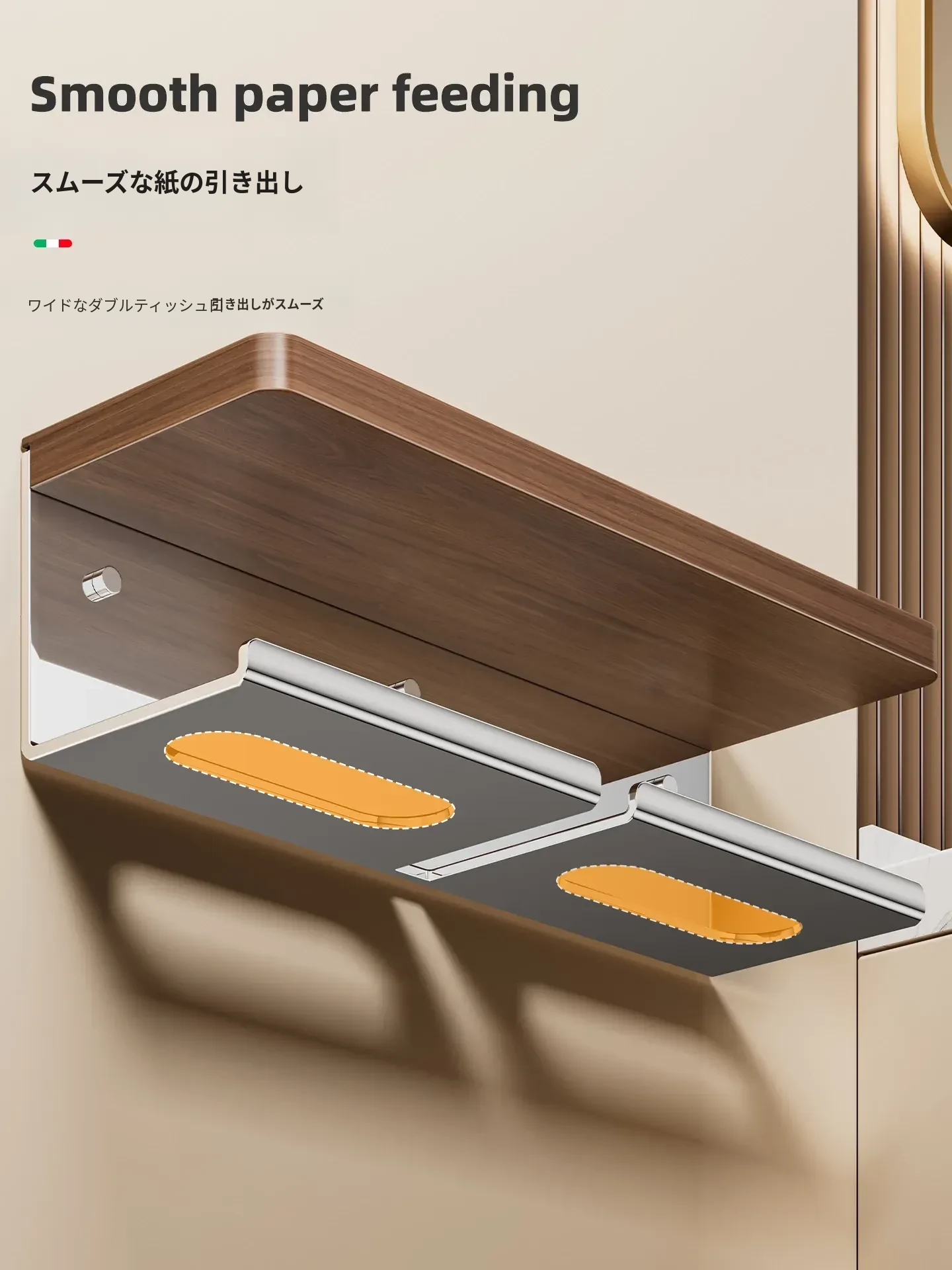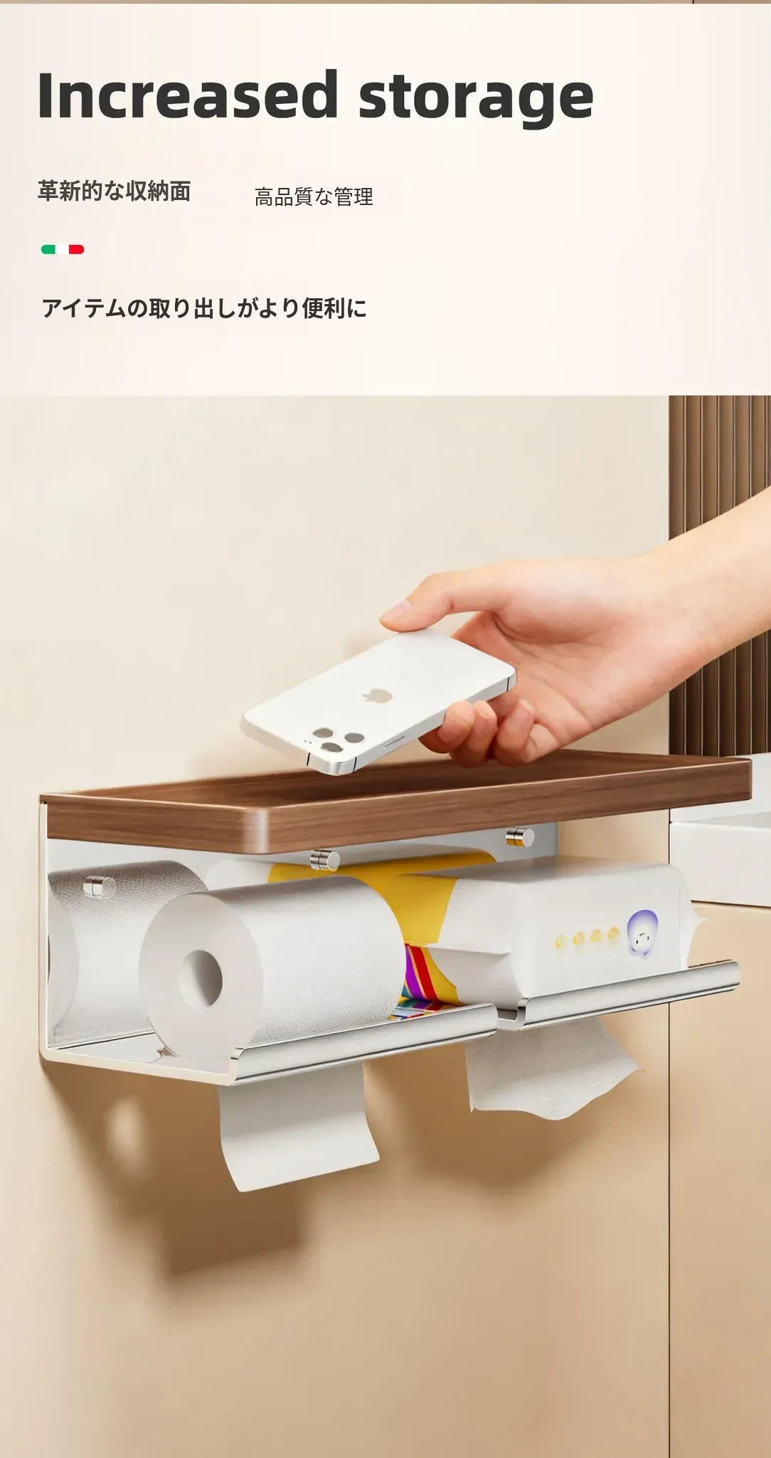 ウォールナット製トイレットペーパーホルダー、穴あけ不要!304ステンレス製のバスルーム&トイレ用ティッシュラック、スタイリッシュな収納で空間を美しく演出します。