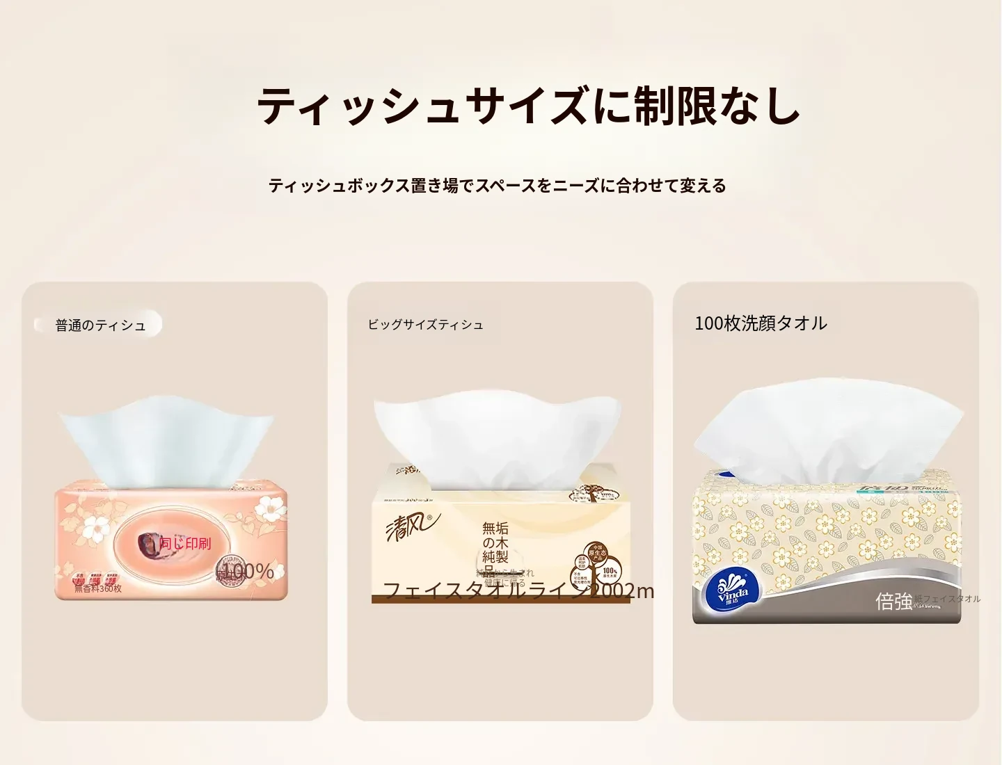 クリームホワイト【ウォールナット+304ステンレス】ティッシュボックス(ダブル抽出)