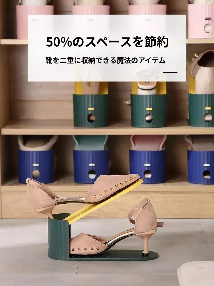 ダブルレイヤーシューズラック|省スペースの靴収納神器!調整可能な靴棚で、玄関をスッキリ整理。靴の整理整頓を簡単に実現し、毎日の出入りを快適に!