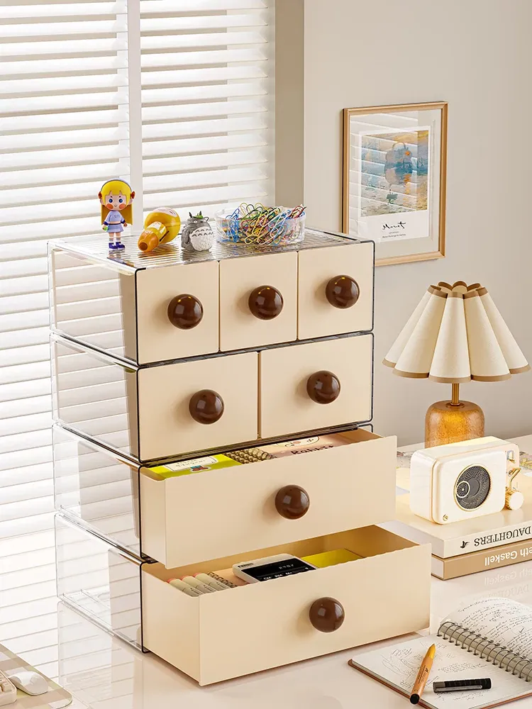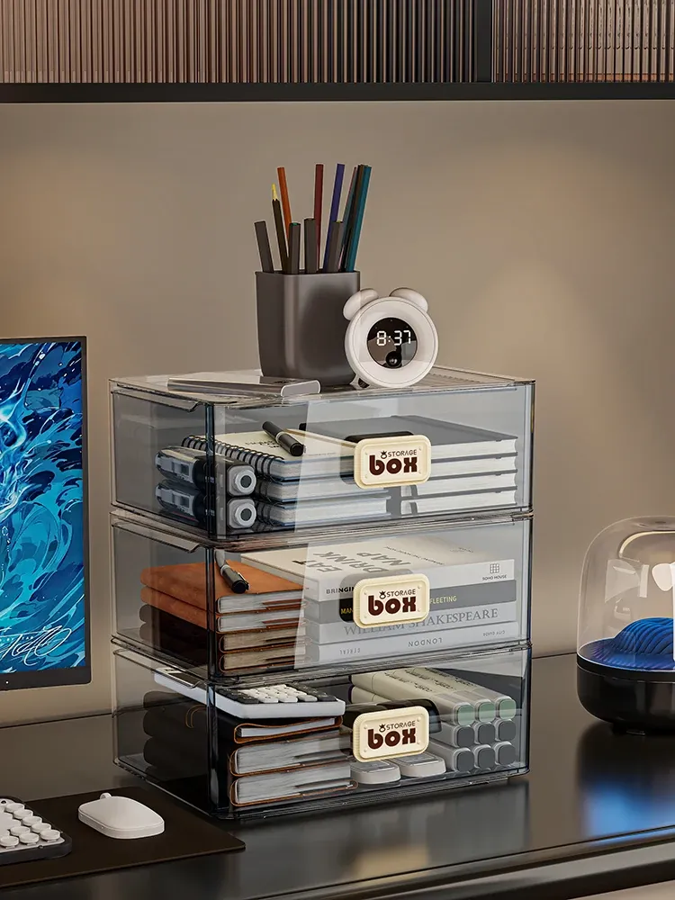 デスクトップ収納ボックス 引き出し式オフィス収納ラック 大容量化粧品・文房具整理ボックス 学生必見!すっきり整理整頓で作業効率アップ!