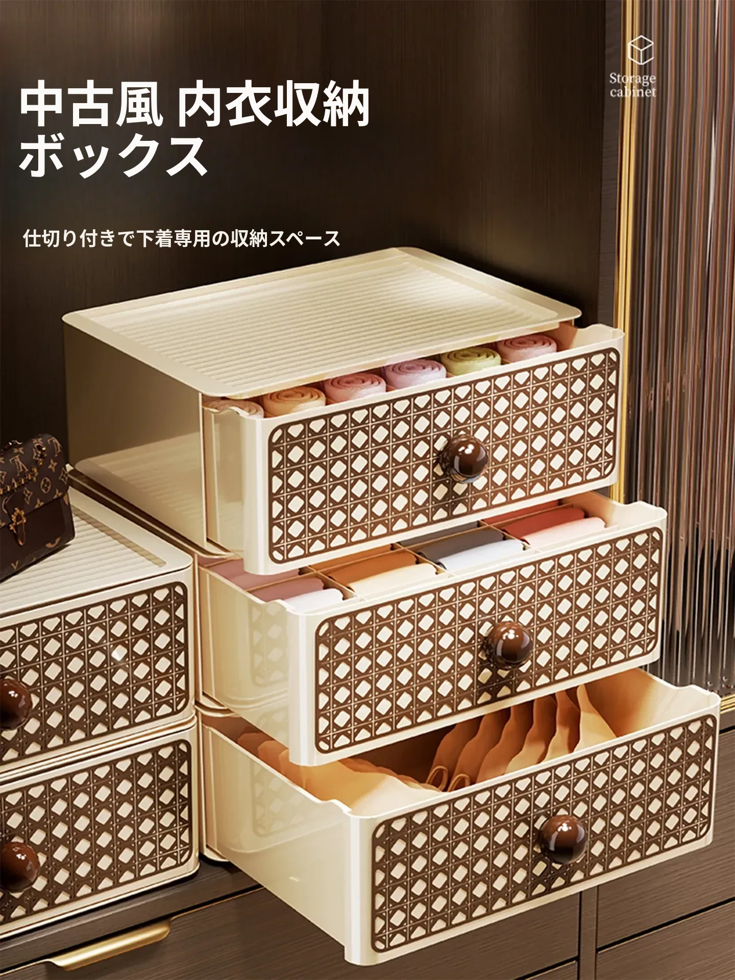 朋菲の下着・靴下収納ボックス|引き出しタイプの3in1整理ケース|自宅でスッキリ!便利な仕切り付きで、細かい衣類もスムーズに収納。快適な生活空間を実現!