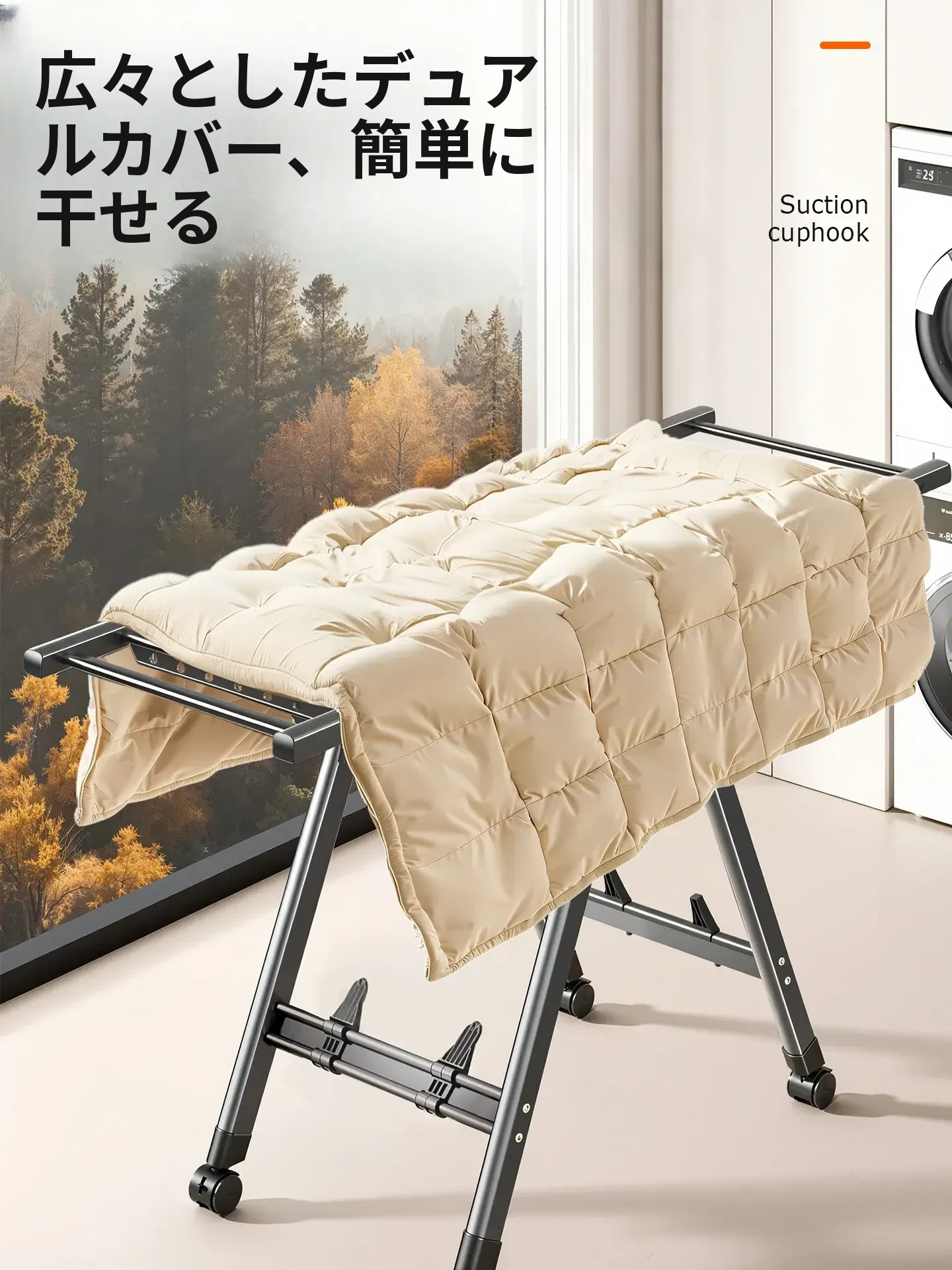 折りたたみ式室内用多機能衣類干しラック|バルコニーやリビングで大活躍!布団や衣類をしっかり乾燥させる便利な移動式干し台!