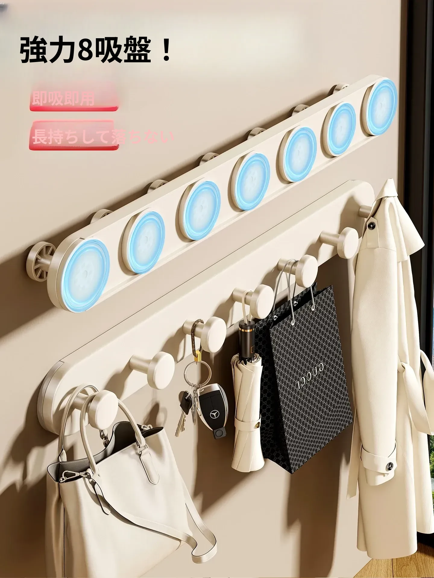 ドーパミン吸盤フック 玄関ドア用強力掛けフック 穴あけ不要!学生寮にも最適な衣類ハンガー!さまざまなアイテムをスッキリ収納できる便利グッズ!