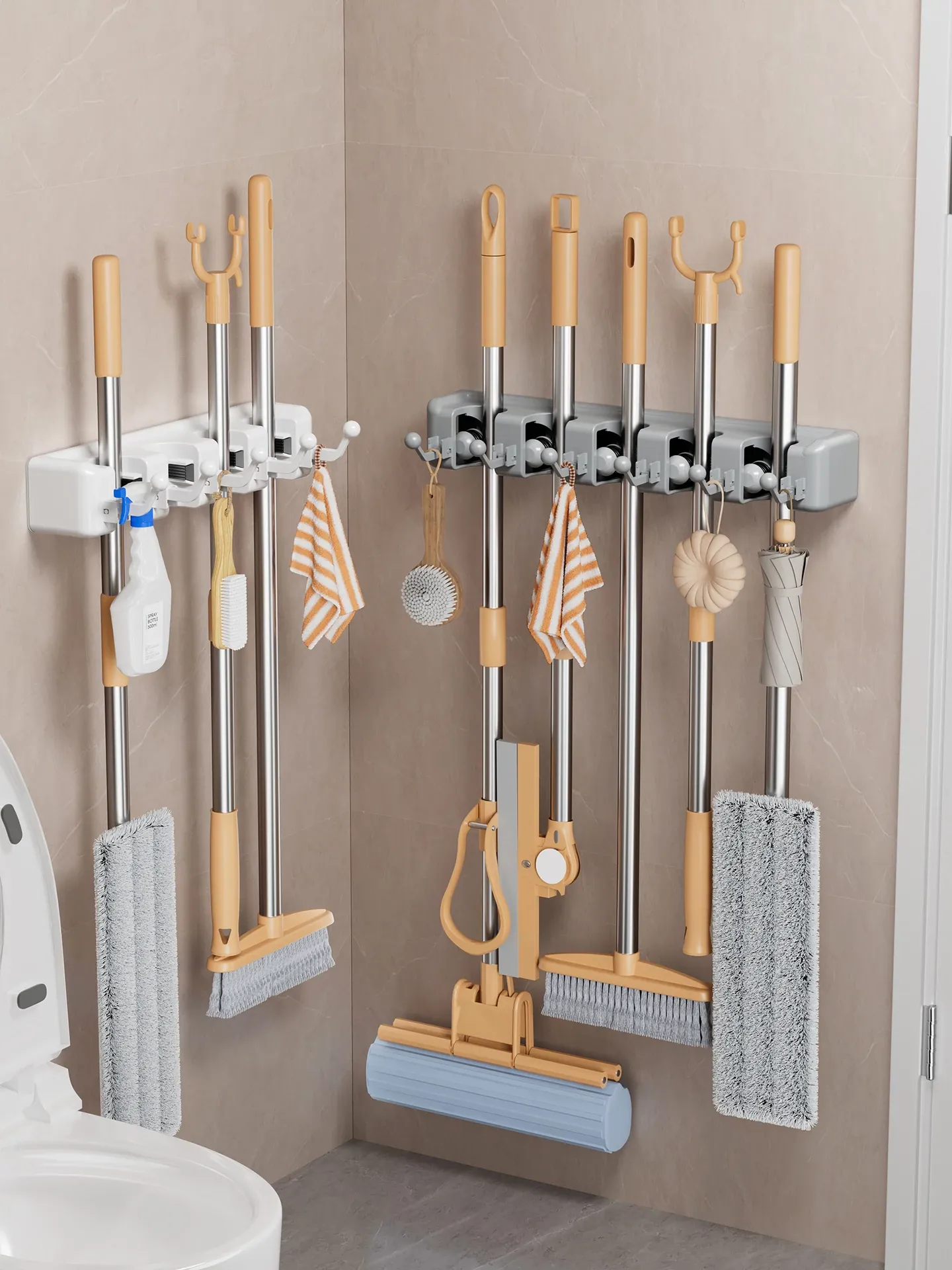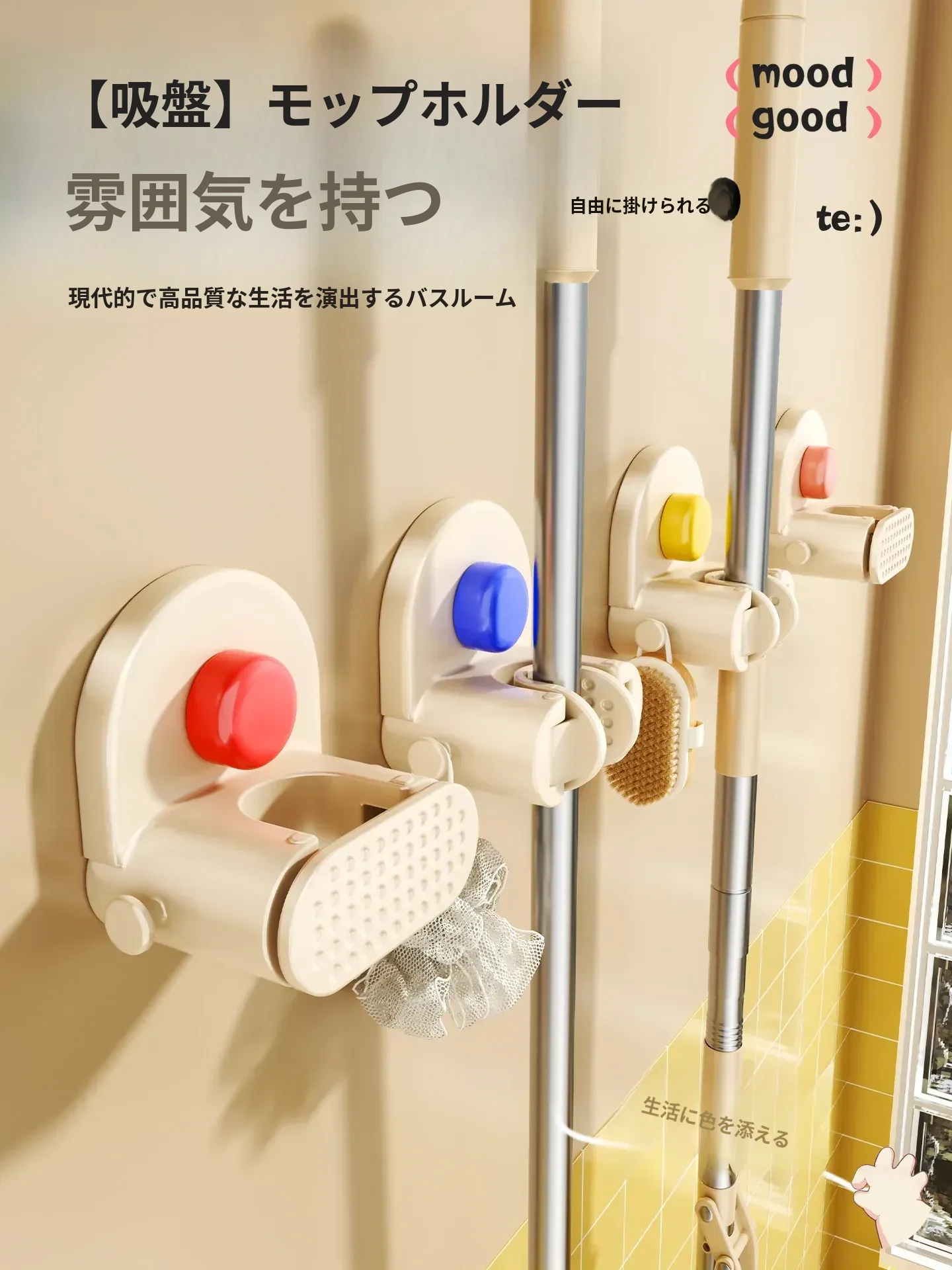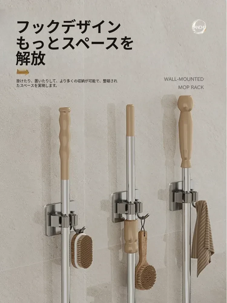 浴室用壁掛けモップクリップ - 穴を開けずに取り付け可能!掃除道具をすっきり収納できる便利アイテム!トイレも綺麗に保つための必需品!