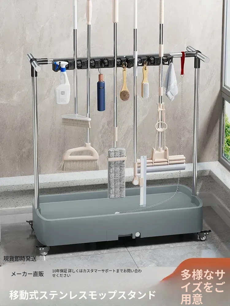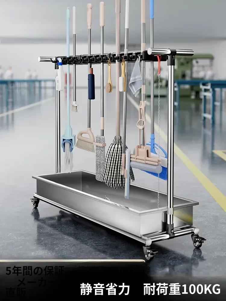 ステンレス製モップスタンド 移動式商用収納モップラック 清掃衛生ツール 作業場専用収納棚 - 高品質で丈夫、清掃効率をアップさせる必須アイテム!