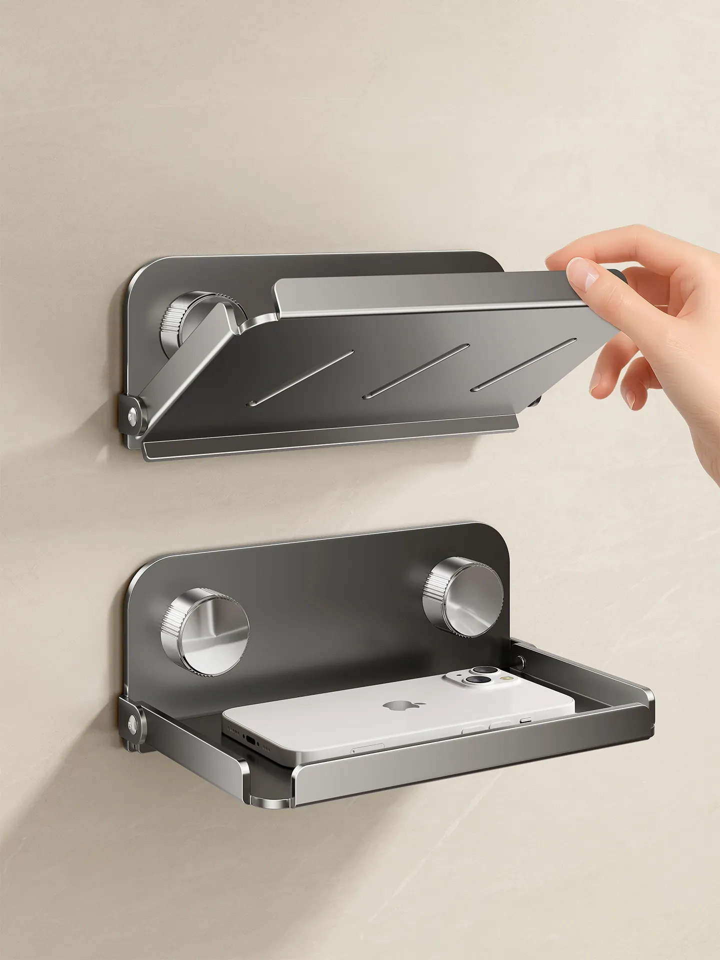 ステンレス製吸盤トイレ用スマホホルダー 折りたたみ式ティッシュホルダー 公共トイレ収納ラック 穴あけ不要 ベッドサイド収納ラック - スタイリッシュで便利な収納ソリューション!