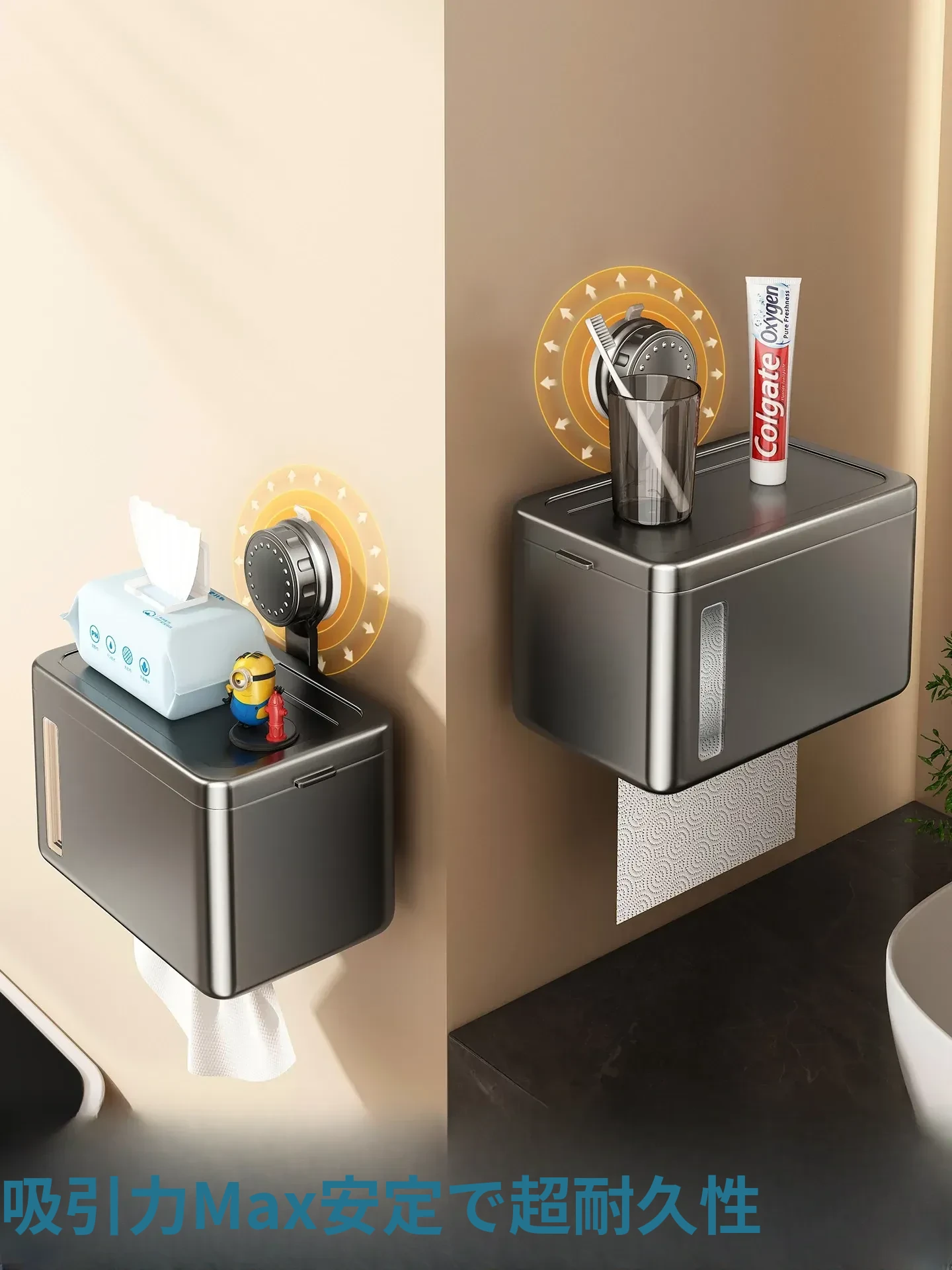 吸盤付きティッシュボックス - 壁掛け式で穴あけ不要!トイレやバスルームに最適な収納ボックス、清潔感あふれるデザインでスペースを有効活用!