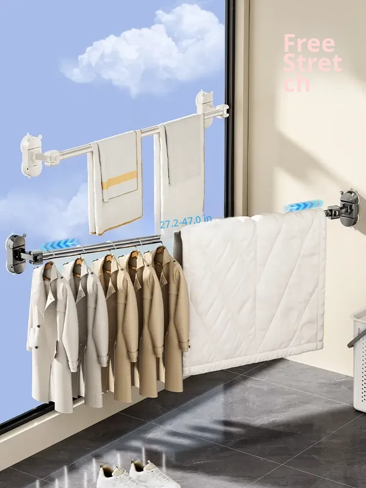 Retractable Suction Cup Clothes Drying Rack - No Drill Balcony Clothesline for Home Use, Perfect for Hanging Clothes and Blankets in Indoor Corners!