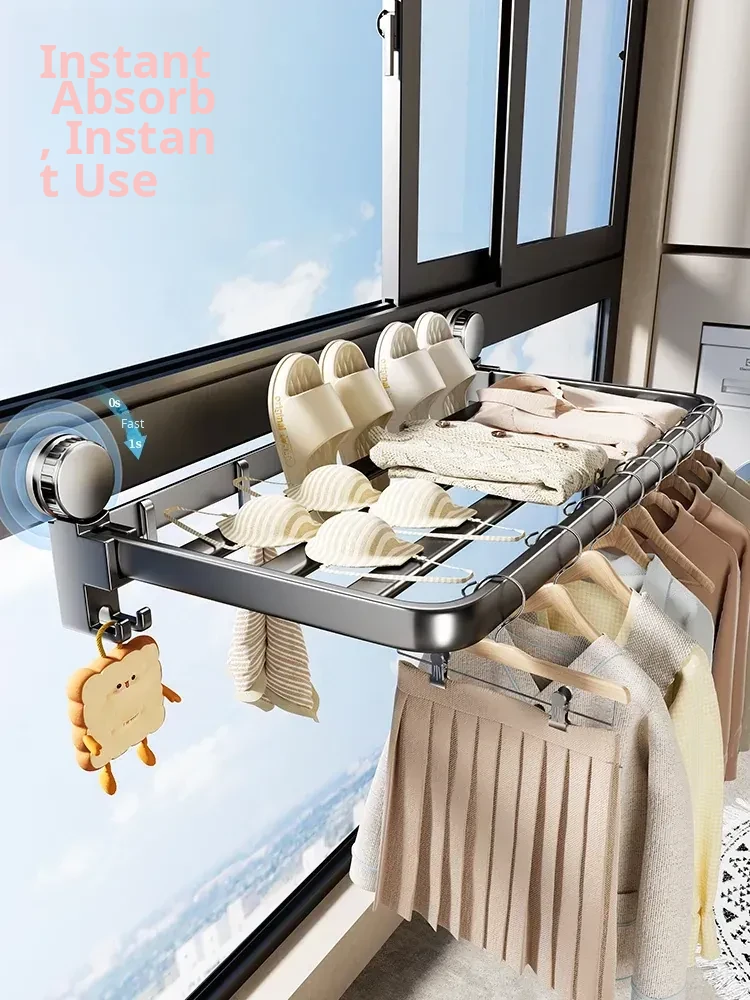 Suction Cup Balcony Clothes Drying Rack - No Drill Indoor Foldable Clothes Hanger for Effortless Drying of Clothes and Socks - Ultimate Laundry Solution