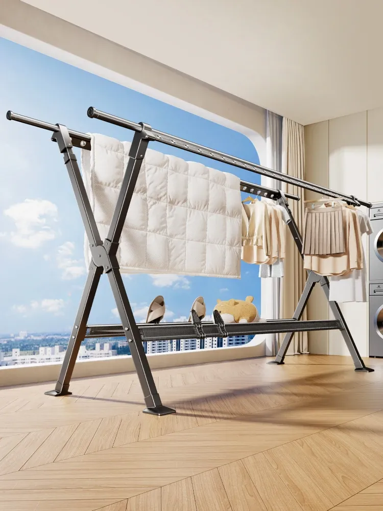 Foldable Indoor Clothes Drying Rack - Multi-Functional Clothes Hanger for Balcony and Home, Ideal for Blanket Drying, Portable and Easy to Move