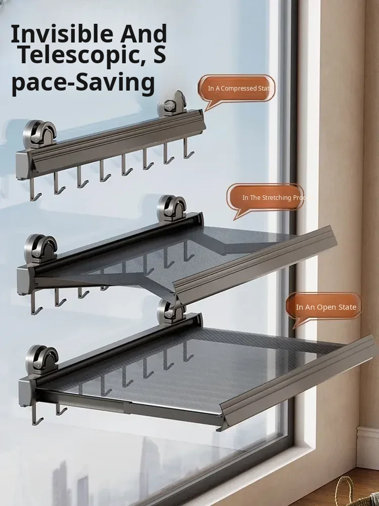 Invisible Suction Balcony Clothes Drying Rack - Space Aluminum, No Drilling Needed, Window Drying Net for Socks and Shoes - The Ultimate Space-Saving Solution!