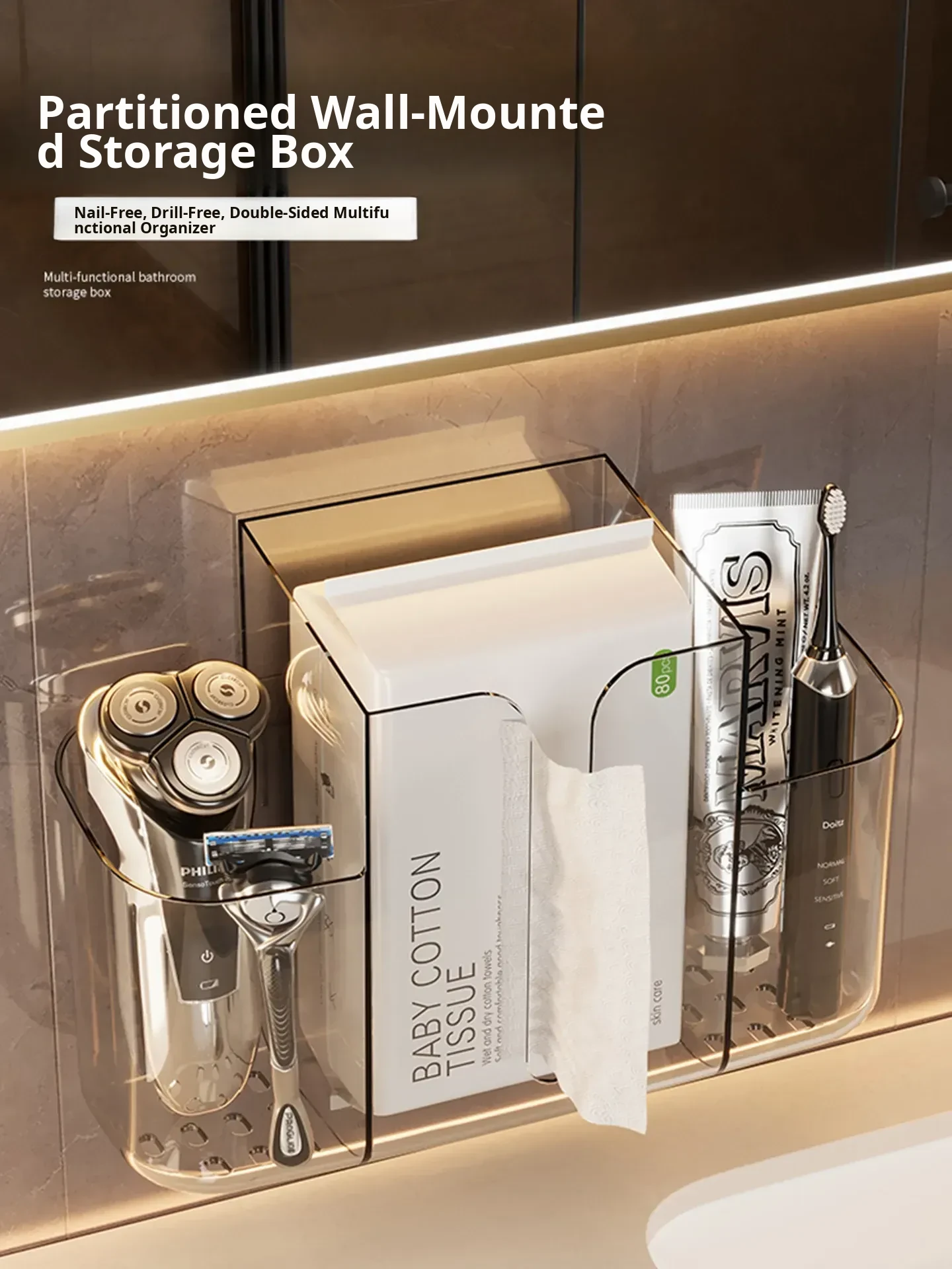 PENGFEI Wall-Mounted Storage Box - Multifunctional Bathroom Organizer for Tissue, Toothbrush, and More - Drainage Design for Easy Water Management - Perfect for Clutter-Free Spaces!