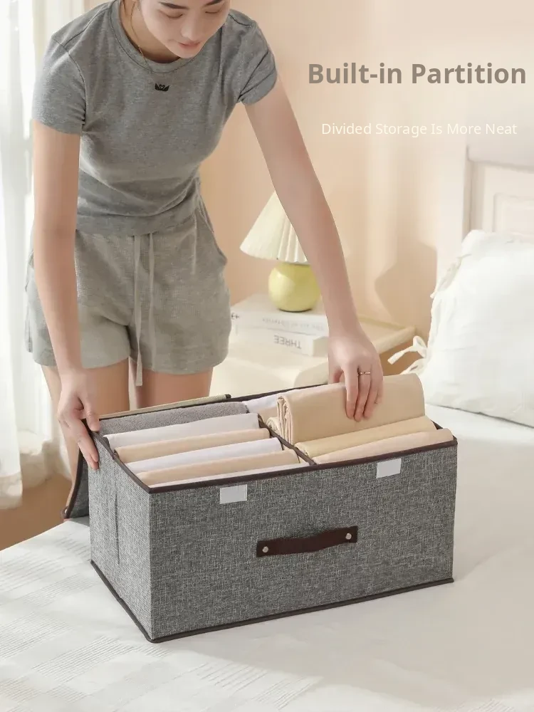 Cotton Linen Clothing Storage Box - Home Drawer Organizer with Dividers for Clothes and Pants - Perfect for Neat and Tidy Storage Solutions!