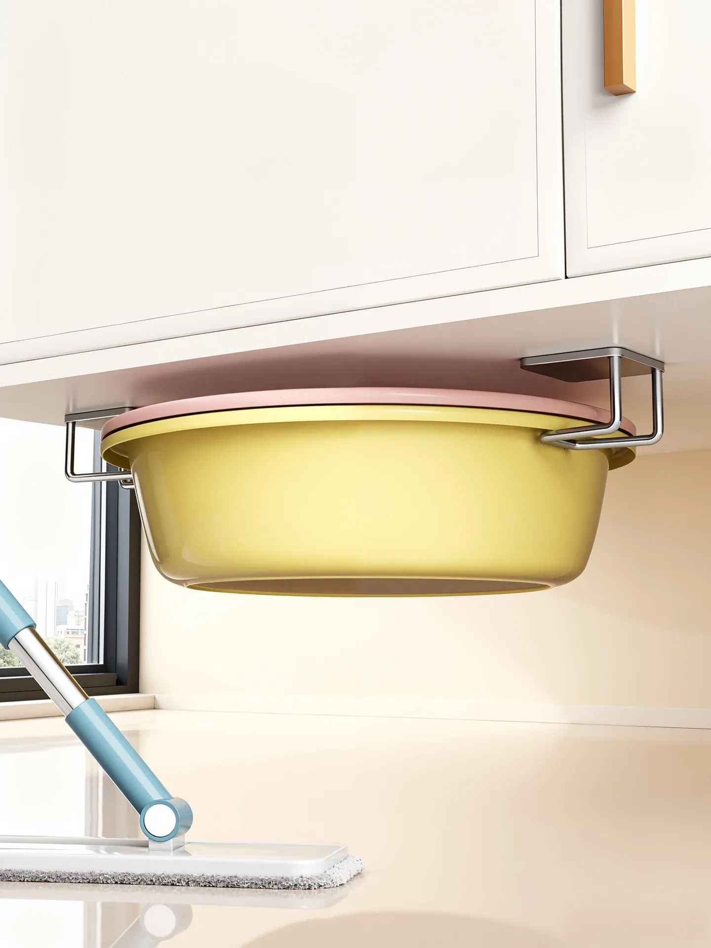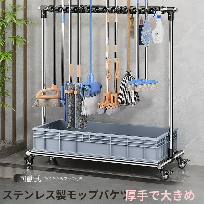 モバイルモップスタンド - 清潔で便利な収納ツール!ステンレス製のフロアスタンドで、モップをスッキリ整理。お掃除が楽しくなる収納アイテムです!