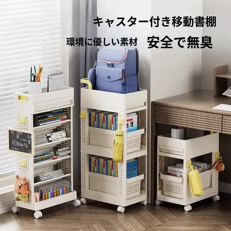 学生必見!可移動の書類収納ラック - 書籍やバックパックをスッキリ収納できる多段式キャスター付き小型カート。家庭や学習スペースに最適です!