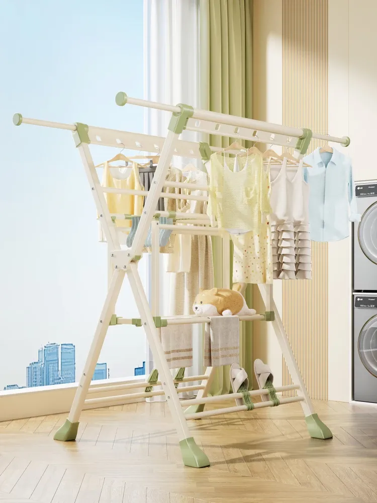 折りたたみ式衣類干しラック - 家庭用・バルコニーでの使用に最適!赤ちゃんの洋服も安心して干せる、室内外で活躍する便利なアイテム。布団もすっきり干せる、あなたの生活をサポートする必需品です!
