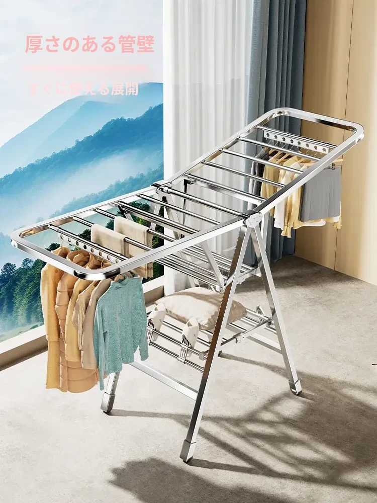 ステンレス製折りたたみ式室内物干しラック - 移動可能なキャスター付き、多機能バルコニー用、布団干しの必需品!おしゃれで便利な家アイテム、スペースを有効活用!