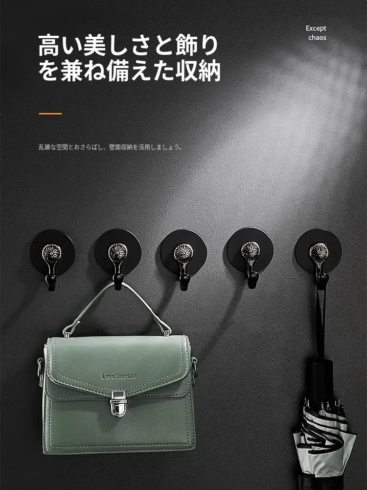 強力粘着フック - 穴を開けずに取り付け可能!ドアの裏やバスルーム、キッチンの壁に最適。重さを支える無痕フックで、衣類や帽子をしっかり収納。お部屋をスッキリ整理整頓!